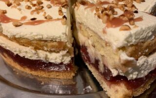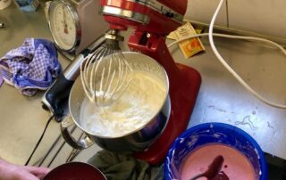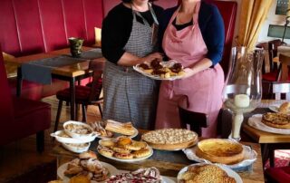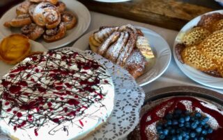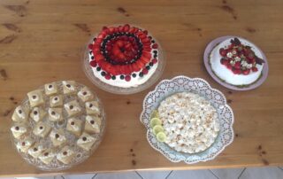 Wir sind keine Konditorinnen, haben uns jedoch in den letzten Jahren in Back- und Tortenkursen Ideen geholt und fleißig geübt. Wir backen mit Herz und Erfahrung leckere Kuchen, verschiedene Gebäcksorten und Törtchen – alles ohne Schnörkel aber mit Pfiff und mit saisonalen Zutaten aus der Region.